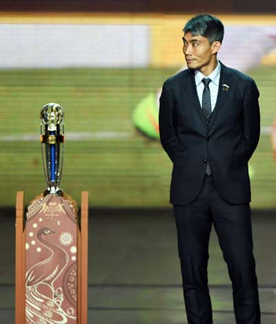 北京时刻11月29日晚21:30,2015年亚足联颁奖典礼在印度新德里进行,阿联酋前锋哈利勒中选新科亚洲足球先生,我国男足和广州恒大双料队长郑智无缘再获这一荣誉。哈利勒本年随阿联酋打入了亚洲杯四强,在与巴林队的竞赛中,他发明了亚洲杯前史最快进球,此外他效能的迪拜阿赫利也打入亚冠联赛决赛,不过终究总比分0-1输给广州恒大。图为郑智登台等候“亚洲足球先生”奖项揭晓。