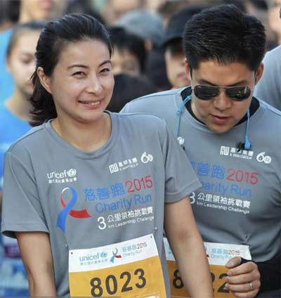 郭晶晶同霍启刚29日到会2015年联合国儿童基金会慈悲跑活动,参与3公里挑战赛。一致着装的两人并没有显得多特别,为了公益活动两人也全无架子可言。