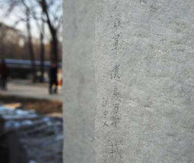 29日,北京,圆明园遗址公园内西洋楼遗址呈现了不少游客不文明纪念,除了最常见的“留名”之外,乃至还有人写上即兴“斥责”八国联军的语句。