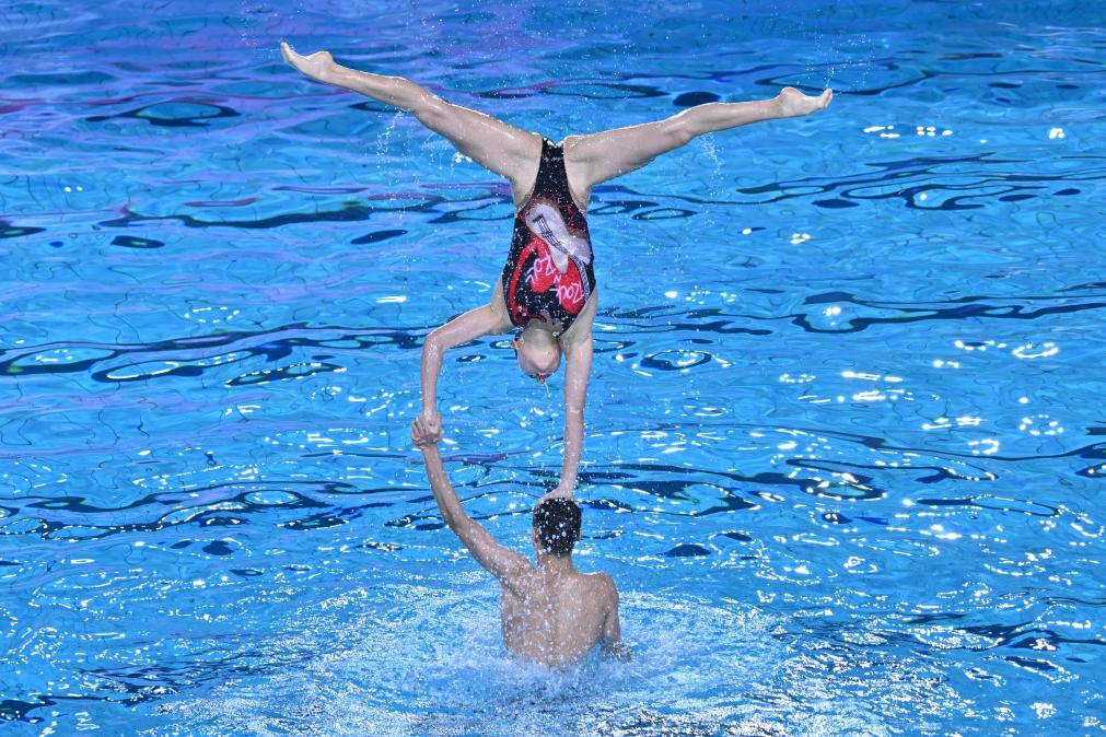 北京队的郭牧兮在13日的团体项目竞赛中担任托举。“咱们竞赛项目的主题是《破阵乐》,想表达力气与美感的结合。”郭牧兮说,男运动员在花游中有力气优势,但也很辛苦。这一个节目排练了半年,他的手腕关节发炎,在托举经常常会疼,所以每天都要承受医治。